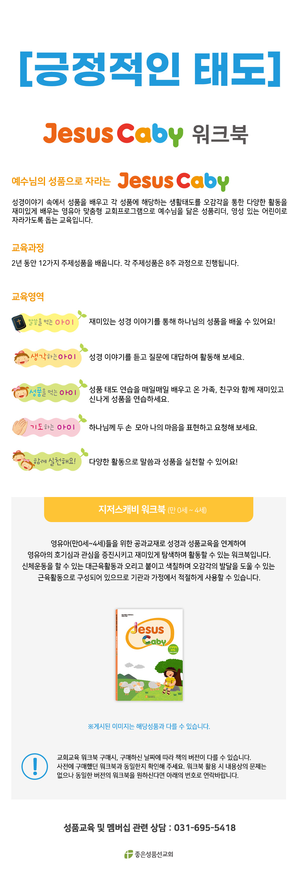 구성 : [긍정적인태도] 지저스캐비 워크북(영아,유아용)