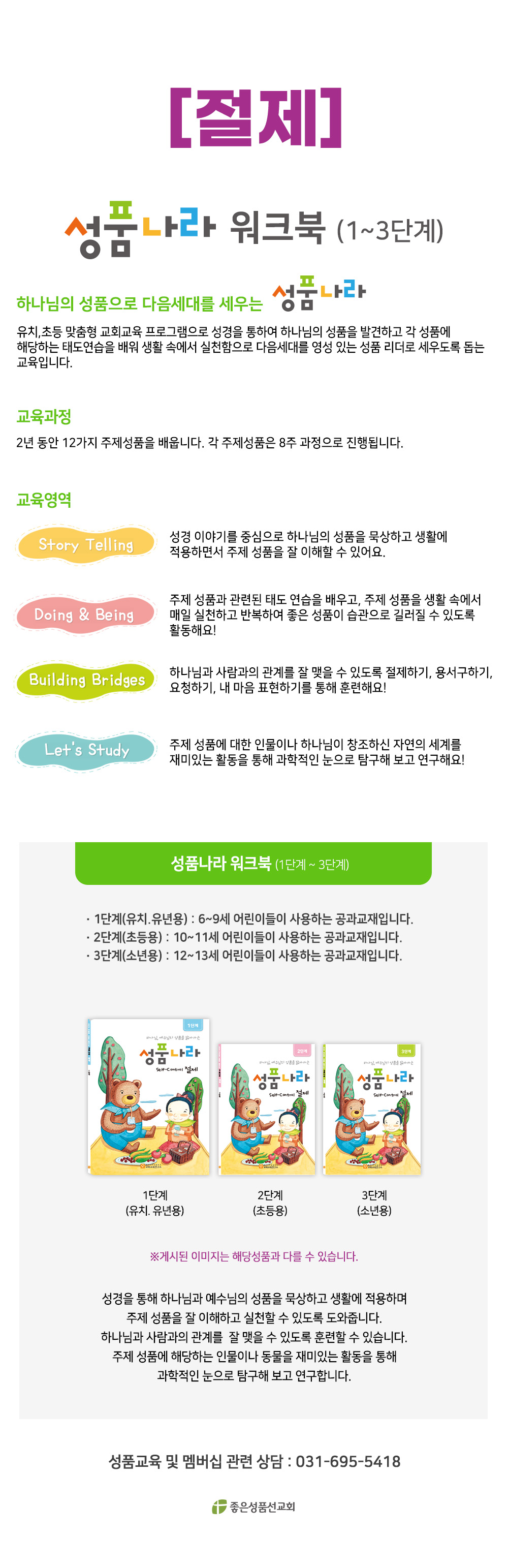 구성 : [절제][1단계](유치.유년용) 워크북 / [2단계](초등용) 워크북 / [3단계](소년용) 워크북